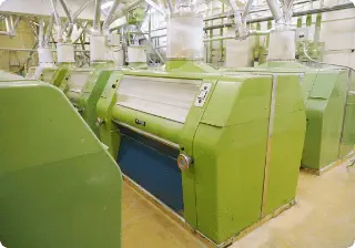 小麦を挽いて小麦粉を製造する。ロール、ふるい、純化機(ピュリファイヤー)を用い、それぞれの機械を順次通過し、段階的に胚乳を細かくして小麦粉へと変化させていく。